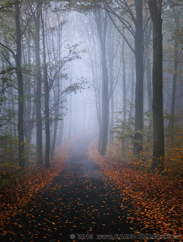 | STROMOVÝ CHRÁM Branžovský hvozd 10. října 2015, 18:59 hod. PANORAMA: 6646 x 8752 pixel složeno ze 6 snímků, 4x plošně ve 2 řadách, 2x EBKT Canon 100 mm, f/8 @ 32 + 10 sec., ISO 200 vítr 1 km/h, teplota 9 °C, 18:59 hod. O FOTOGRAFII: Kdo zná mé názory a portfolio, tak ví, že na svých fotografiích doslova nesnáším cesty (stejně jako domy, sloupy atp.). Proč? Snad symbol civilizace, potažmo zásahu do krajiny. Na svých fotografiích mám rád krajinu nedotčenou - co nejblíže tomu, jak by vypadala před jakkoliv nespecifikovaným dávnem. Zde jsem udělal výjimku. Toto byl případ, kdy mi hlavou šla myšlenka inspirovaná tím, co jsem viděl. Já si postupně uvědomoval, že je to název pro fotografii, která měla teprve vzniknout. A proto ta cesta. Je dominantou, je uličkou probíhající uprostřed chrámu mezi stromy symbolizující věřící vzhlížejícími vzhůru, k Bohu, k nebesům, do nekonečné dálky a hlubin zároveň. Maximální tisková velikost tohoto obrazu je: 150 x 198 cm KLÍČOVÁ SLOVA: podzim, les, buk, kmen, mlha, listí, kopec, Koráb, Branžovský hvozd |