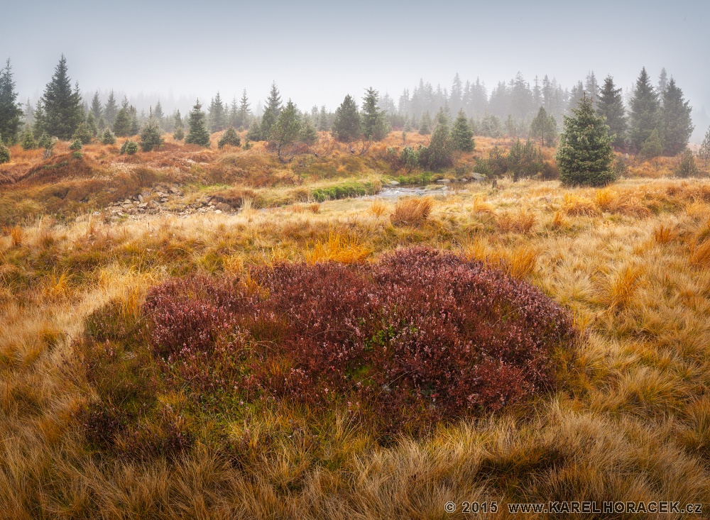 | VŘESOVÉ ZÁTIŠÍ Jizerské hory • 17. říjen 2015, 12:01 hod. PARAMETRY: bezvětří, teplota 7 °C Canon 50 mm USM, f/11 @ 1/13 + 1/3 sec., ISO 100 PANORAMA: 12263 x 8987 pixel složeno z 19 snímků, 11x plošně ve 2 řadách 2x expoziční bracketing (horní řada), 2 roviny ostření (spodní řada) CO JE NA FOTOGRAFII: Jedno z mnohačetných zákoutí podél řeky Jizerky v odlehlejších oblastech osady Jizerky... Několikahodinová procházka klidnou krajinou, plnou mlhy a úžasného ticha mohla působit jednotvárně, přesto poskytla několik míst a chvil, kdy se člověk musel zastavit a vnímat. Myslí i fotoaparátem. Maximální tisková velikost tohoto obrazu je: 204 x 150 cm KLÍČOVÁ SLOVA: podzim, Jizerské hory, hory, mlha, vřes, les, tráva, potok, voda, Jizerka |