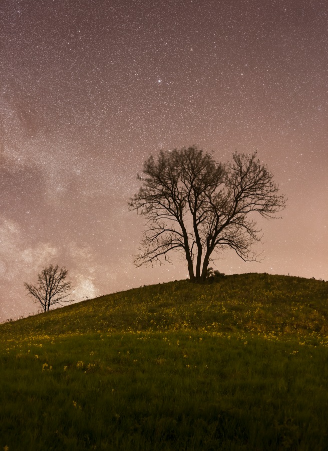 | TOBIÁŠEK České středohoří • 1. květen 2017, 1:36 hod. PANORAMA: 5389 x 7403 pixel složeno z 26 snímků, 4x plošně ve 4 řadách 2 řady obloha + 2 řady krajina, 2x exp. BKT, 2 roviny ostření OBLOHA: 2x 8x f/5.6 @ 304 sec., ISO 2000 + 1x DF KRAJINA: 1x 4x f/5.6 @ 365 sec. + 1x 4x f/5.6 @ 426 sec., ISO 2000 + DF Canon 50 mm vítr 43 km/h, teplota 8 °C Maximální tisková velikost tohoto obrazu je: 150 x 206 cm KLÍČOVÁ SLOVA: jaro, České středohoří, kopec, strom, tráva, petrklíč, noc, hvězdy, Mléčná dráha, Tobiášův vrch, vítr |