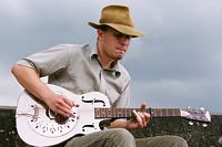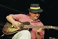 na akustickou kytaru, když napodoboval zpěv starých černochů. Krom